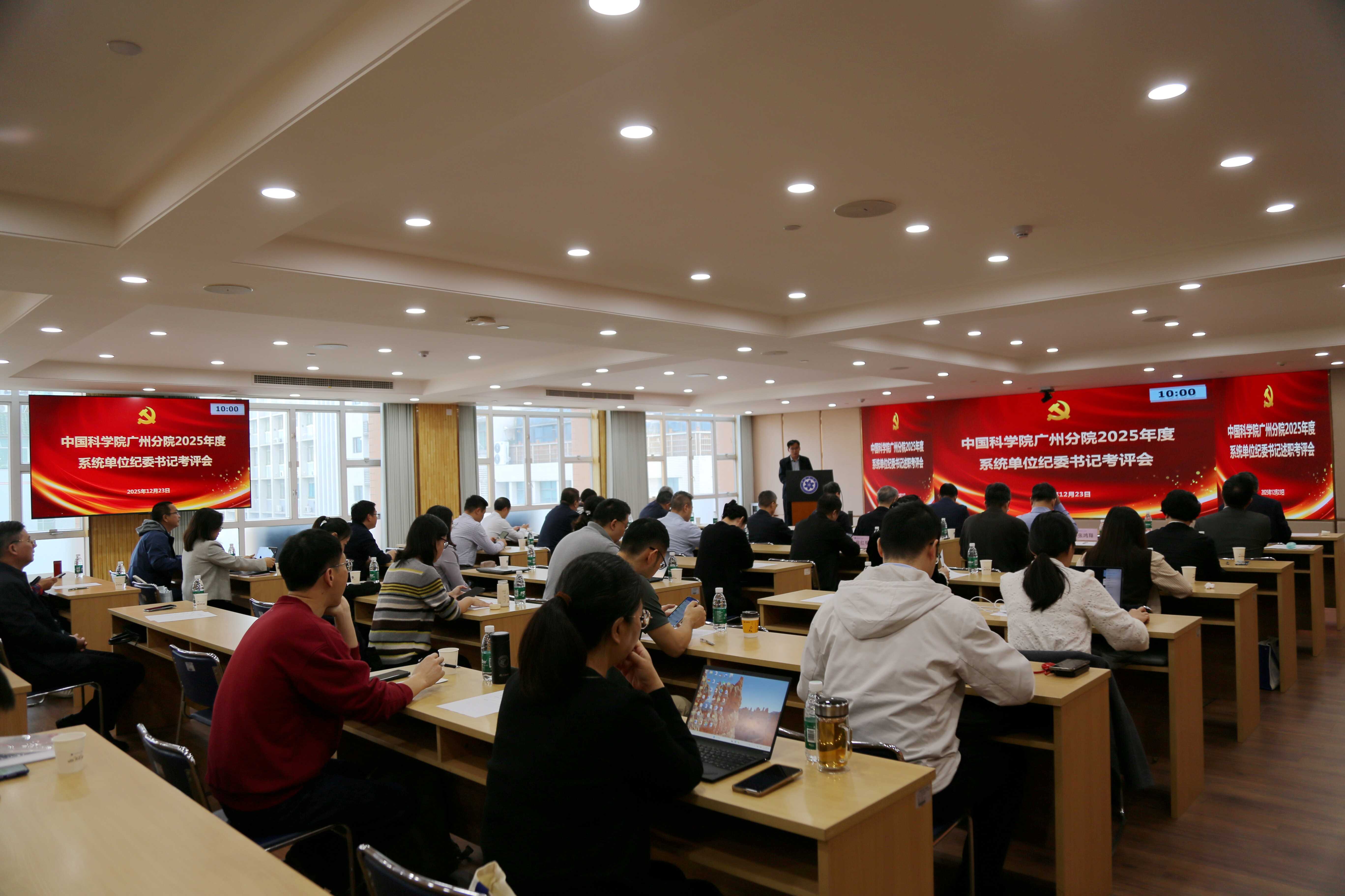 12月24日,中國科學院廣州分院分黨組召開2025年度系統單位黨建、紀檢工作述職考評會。廣州分院分黨組成員,分院系統各研究所黨委、紀委書記,黨建、紀檢部門負責人等40余人參加會議。12月24日,中國科學院廣州分院分黨組召開2025年度系統單位黨建、紀檢工作述職考評會。廣州分院分黨組成員,分院系統各研究所黨委、紀委書記,黨建、紀檢部門負責人等40余人參加會議。會上,中國科學院南海海洋研究所、華南植物園、廣州能源研究所、廣州地球化學研究所、亞熱帶農業生態研究所、廣州生物醫藥與健康研究院、深圳先進技術研究院、深海科學與工程研究所的黨委書記圍繞年度黨建重點任務落實情況,從學習貫徹黨的二十屆四中全會精神、習近平總書記對中國科學院提出的搶占科技制高點的重要指示批示精神,落實黨中央和院黨組決策部署及開展深入貫徹中央八項規定精神學習教育等7個方面進行了述職。紀委書記圍繞履行全面從嚴治黨監督責任的情況,推動落實同級黨組織和上級紀檢組織交辦工作的情況,謀劃并推動本單位紀檢工作等方面的情況進行了述職。述職報告全面總結了2025年分院系統各單位黨委、紀委取得的工作成績與進展,深入分析了存在的不足與問題,提出了2026年工作的安排與規劃。與會同志進行了交流與評議。會議現場廣州分院分黨組書記黃從利作對分院系統各單位2025年黨建、紀檢工作給予肯定,并代表分院分黨組對各單位的工作提出新的希望與要求。一是認真貫徹黨中央和院黨組重大決策部署,黨委要主動參與推動本單位深化科研院所改革、“十五五”規劃編制、重大科技任務組織實施等重大中心工作;二是深化改革創新,釋放內生動力。要持續推進“深化黨紀學習教育、嚴明崗位工作紀律”專項工作,不斷優化完善制度機制,加強常態化監督檢查,持續推動“三項制度”嚴格執行,取得實效;三是注重凝練工作亮點,形成特色黨建品牌,抓好黨宣工作,弘揚科學家精神,為搶占科技制高點營造良好的氛圍。四是著力凝練特色支部工作法,扎實推進“四強”黨支部建設,以高質量黨建引領保障,加快搶占科技制高點核心任務。
