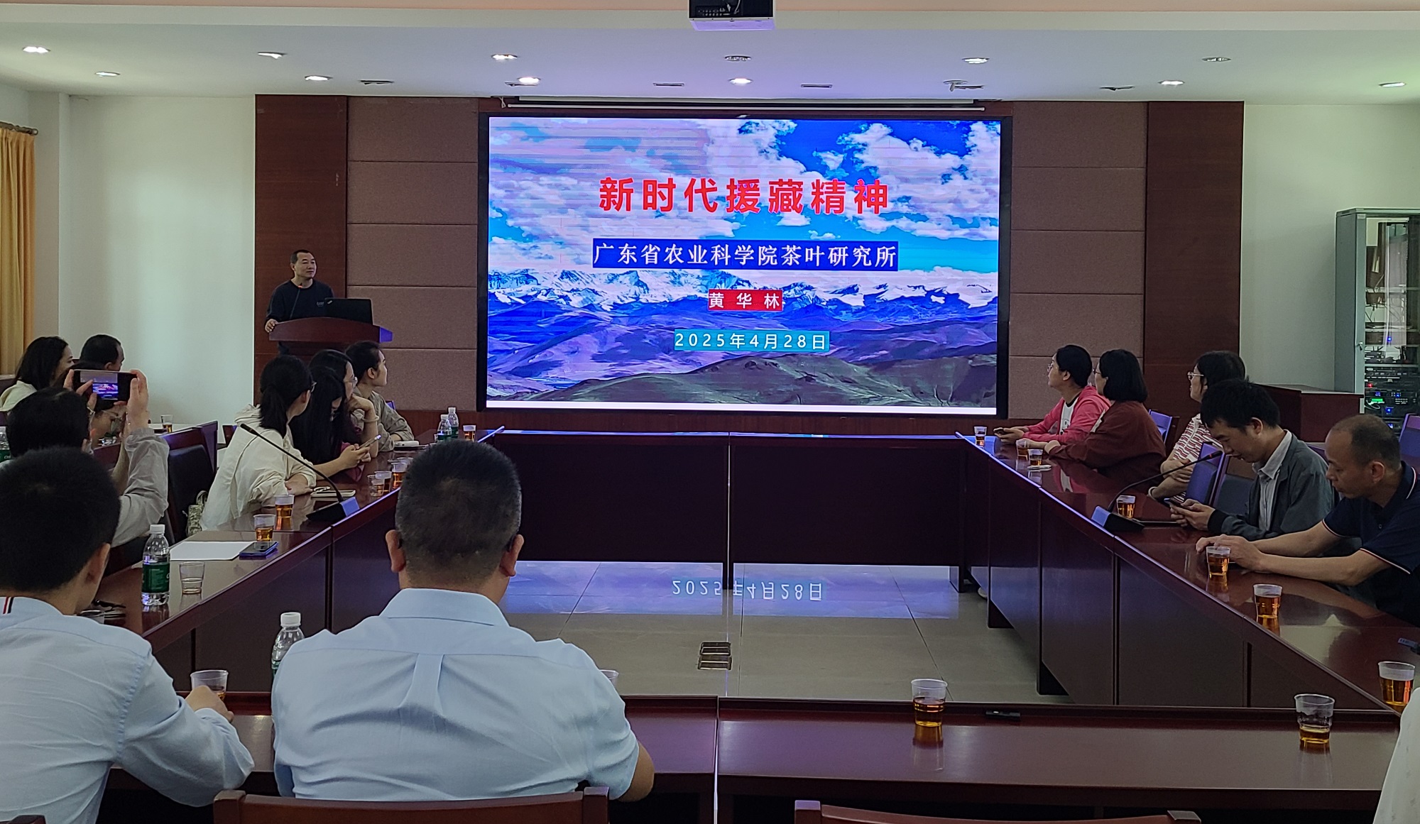 此次活動得到了廣東省農業科學院茶葉研究所的大力支持。青年首先在廣東省名優生態茶葉重點科研基地開展“優秀科學家面對面”交流活動。茶葉研究所正高級農藝師、現任茶葉研究所技術推廣服務部主任黃華林為青年分享了他在西藏林芝市援藏三年的深深情懷。他所在的廣東省第九批援藏隊易貢茶廠工作組通過加強田間管理、改進種茶工藝、更新制茶設備、培養專業人才、開展茶文化建設等系列工作,幫助茶廠畝產提高了近1.4倍,總產量提高了2.4倍,茶廠銷量收入均顯著提升,并于2020年實現歷史以來第一次扭虧為盈。黃華林用他的親身經歷詮釋了科學技術的力量,并鼓勵廣大青年扎根基層、勇于擔當,將個人職業規劃與國家需求結合,通過專業能力實現社會價值。