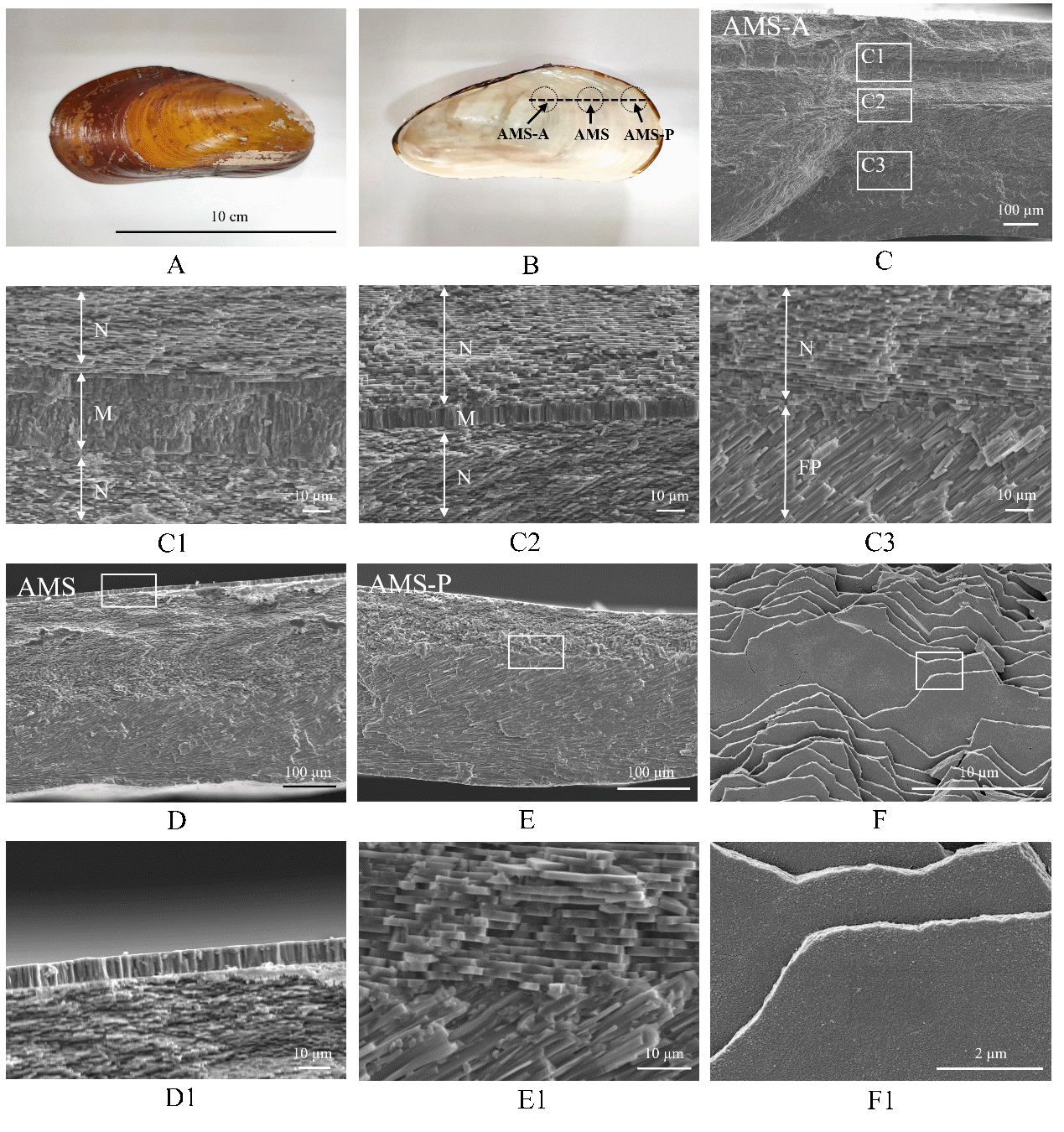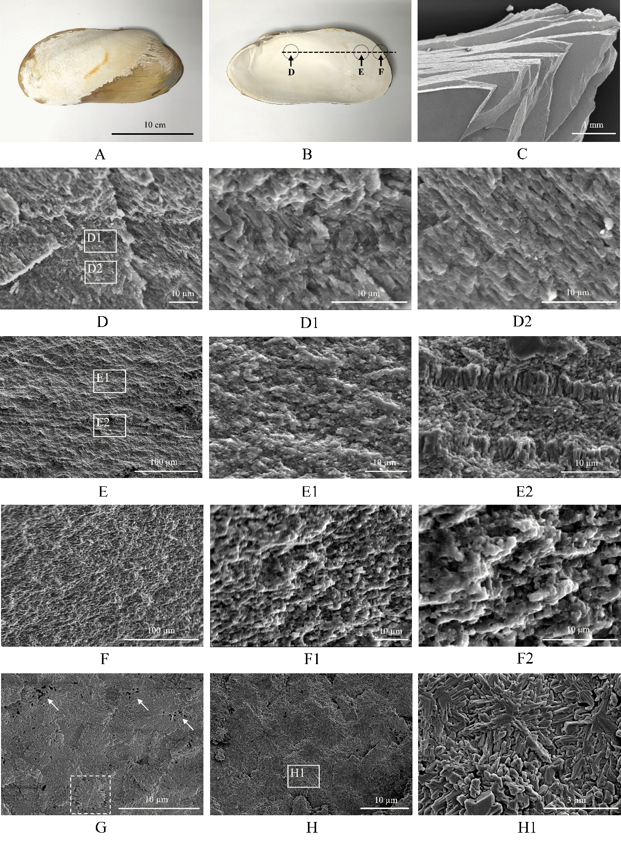 圖1 深海海馬大偏頂蛤貝殼微觀結構
