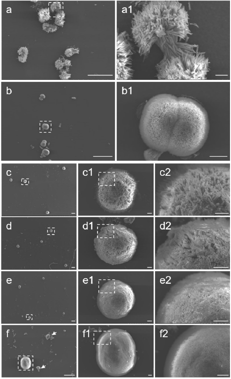 圖4 AmKaSPI重組蛋白體外調控方解石、文石結晶形成