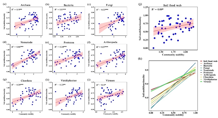 圖4?土壤生物群落穩(wěn)定性和土壤多功能性的關(guān)系