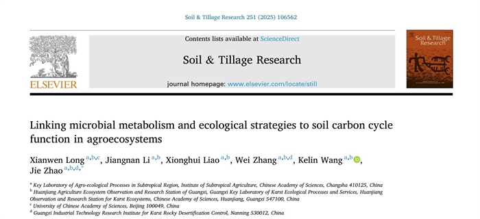 農(nóng)業(yè)生態(tài)系統(tǒng)的可持續(xù)性依賴于土壤微生物組這一“隱藏的地下引擎”。然而,集約化農(nóng)業(yè)管理如何影響土壤微生物的群落構(gòu)建、土壤微食物網(wǎng)的相互作用以及最終的生態(tài)功能,仍是一個需要系統(tǒng)解析的黑箱。為回答這一科學問題,中國科學院亞熱帶農(nóng)業(yè)生態(tài)研究所王克林研究員團隊的趙杰研究員在桂西北地區(qū)開展了區(qū)域尺度采樣研究。研究團隊選取該區(qū)域兩種主要土壤類型——石灰土和紅壤,并在其上確定了四種典型農(nóng)用地,按農(nóng)業(yè)干擾強度由低到高依次為牧草地、甘蔗地、水稻田和玉米地。研究系統(tǒng)揭示了農(nóng)業(yè)管理與土壤類型如何協(xié)同調(diào)控土壤微生物組的裝配過程、土壤生物互作網(wǎng)絡及其關(guān)鍵生態(tài)功能的作用機制。