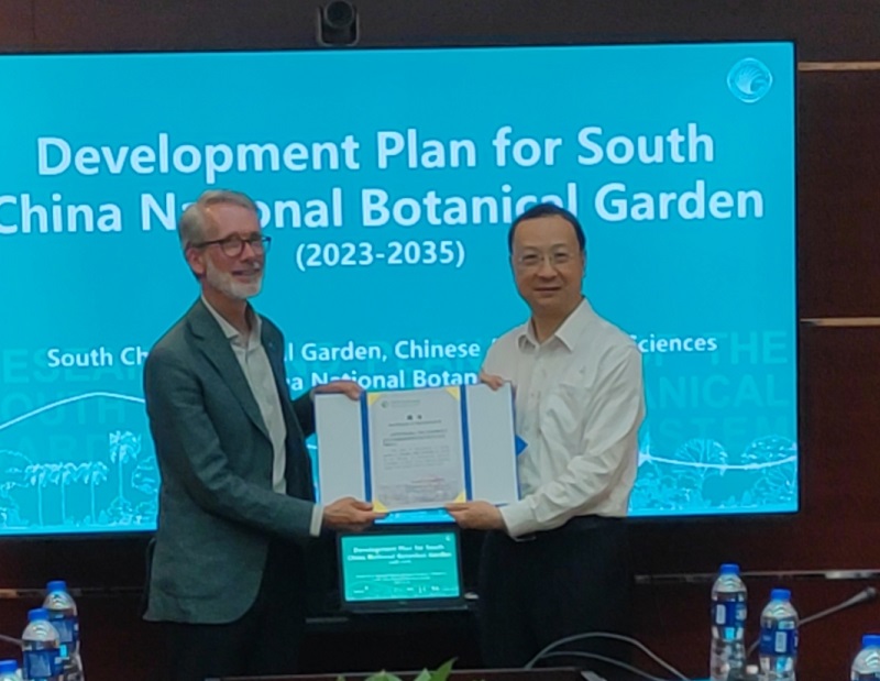 為落實國務院關于華南國家植物園建設要“強化自主創新,接軌國際標準,推動構建中國特色、世界一流、萬物和諧的國家植物園體系”批復要求,高起點、高標準、科學有序推動華南國家植物園建設工作,華南植物園于10月18日在園內組織召開《建設方案》國際咨詢會,來自10家世界著名植物園及國際機構的13位專家參加了此次咨詢會(7位參加現場會,6位參加函審),其中包括國際植物園保護聯盟(BGCI)主席Stephen Blackmore院士、國際植物園協會(IABG)主席Timothy John Entwisle、美國橡樹泉基金會主席Peter Crane院士、英國邱園主任Richard Deverell、美國密蘇里植物園主任Peter Wyse Jackson、英國愛丁堡植物園主任Simon Stephen Milne等世界頂級專家。園領導班子成員及部門負責人、華南國家植物園共建工作專班成員單位代表列席會議。